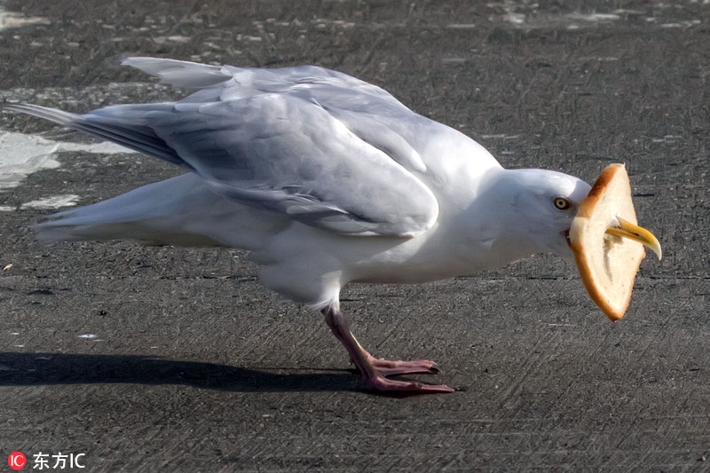 可以说是爆笑了!冰岛海鸥吃面包把自己卡住