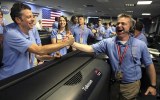 美国宇航局工作人员在确认着陆后欢呼