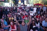 纽约时代广场观看大屏幕直播火星车登陆的人群